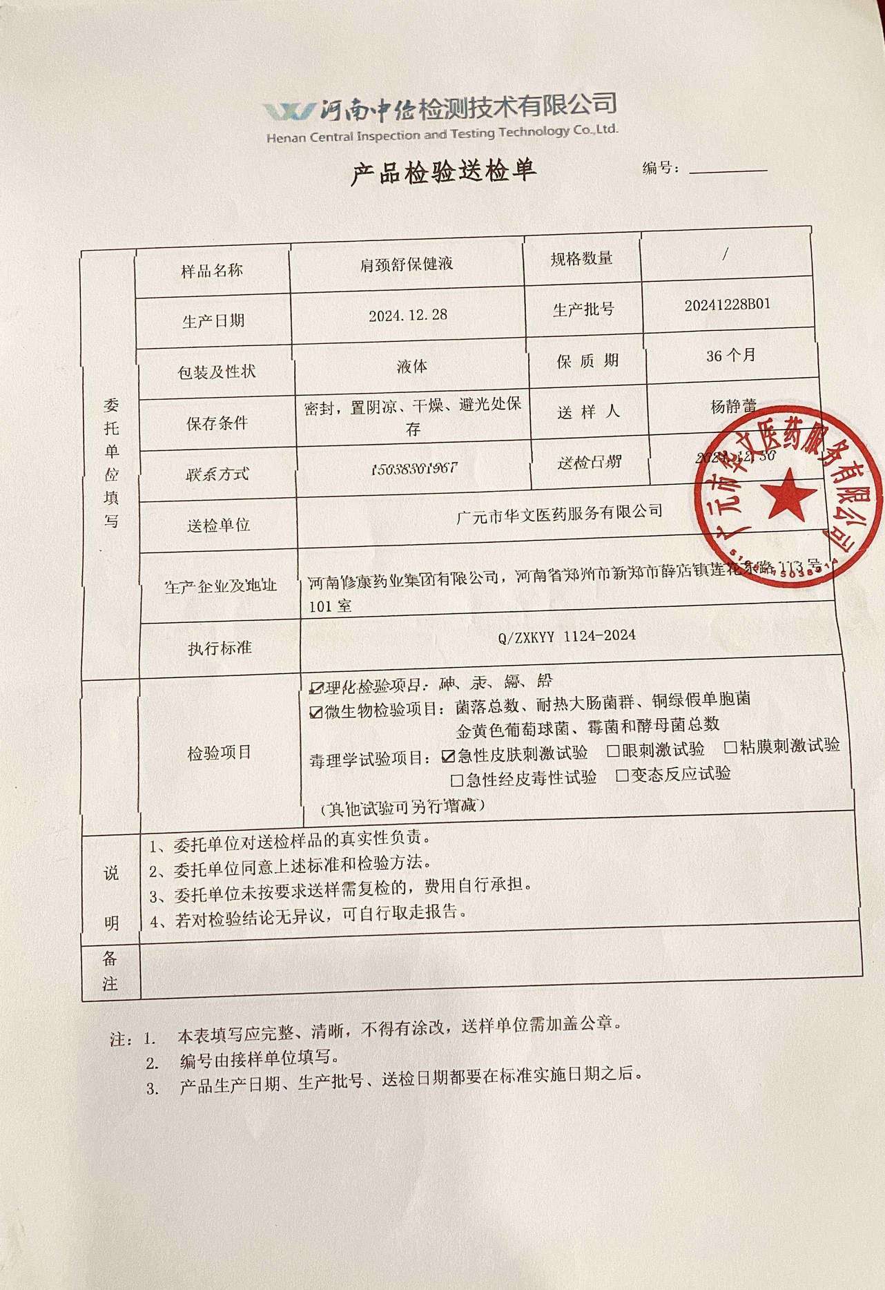 产品检验送检单2