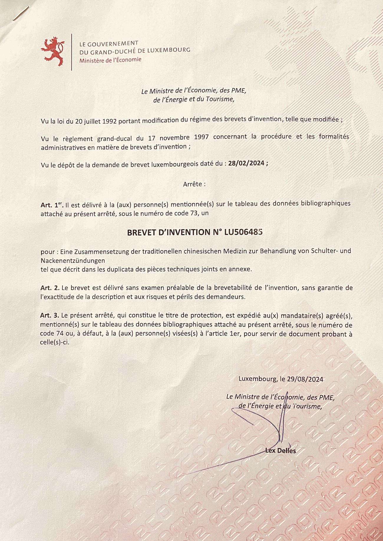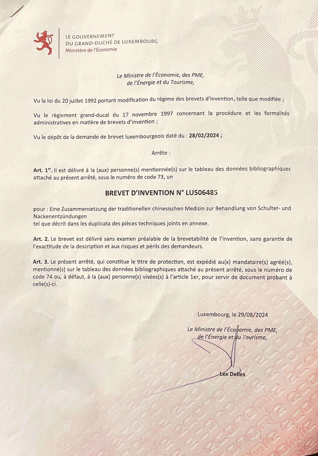 卢森堡专利1
